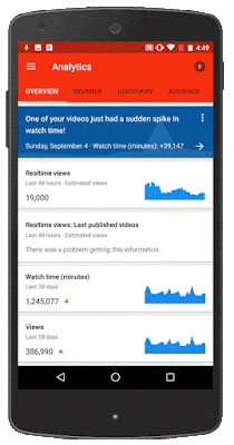 Ist eines deiner Videos in deiner Abwesenheit plötzlich besonders viel angeklickt worden? Mit unseren neuen Statistikfunktionen bekommst du eine personalisierte Nachricht, wenn auf deinem Kanal etwas Außergewöhnliches passiert, sowie Tipps dazu, wie du die neuesten Entwicklungen optimal für dich nutzen kannst.