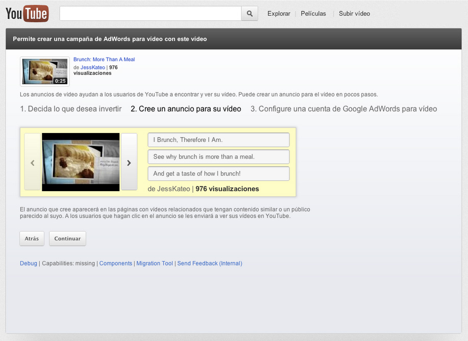 Hemos pensado que puede haber otros creadores que también quieran llegar a nuevos usuarios con sus vídeos. Para poder llegar a una audiencia más amplia en YouTube con facilidad, hemos desarrollado una nueva forma de crear anuncios para tus vídeos directamente desde el gestor de vídeos. Esta nueva función permite subir un vídeo a YouTube y empezar a promocionarlo fácilmente con anuncios de vídeo en cuestión de minutos.
